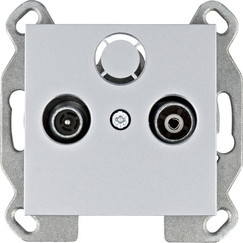 Gniazdo antenowe RTV końcowe w kolorze srebrnym z serii lumina, marki Hager o numerze katalogowym WL3012.