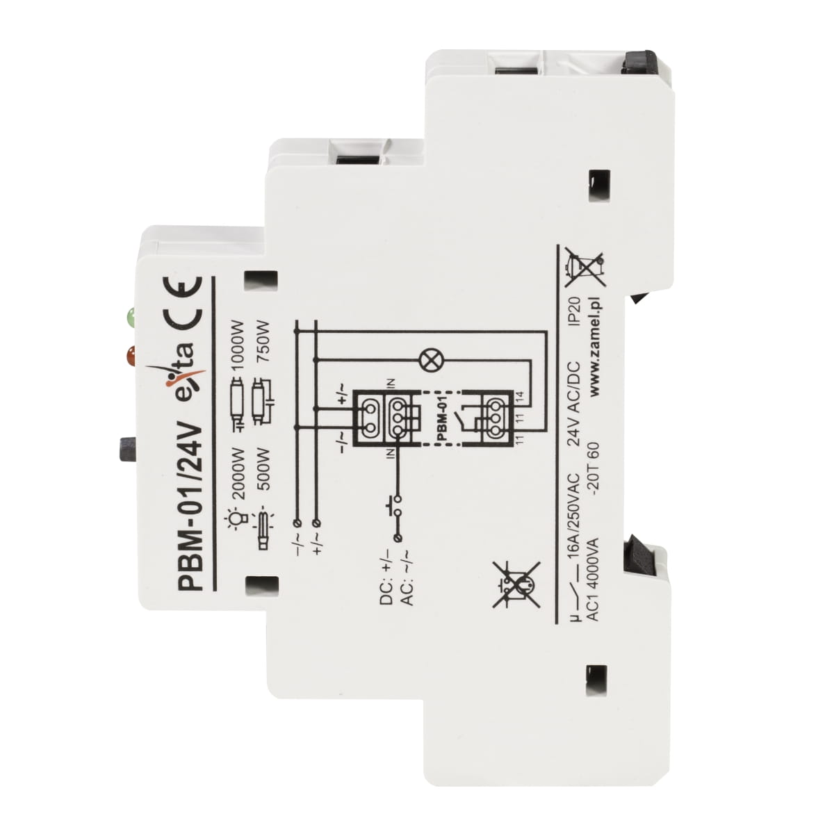| Wymiary | jednomodułowa (17,5 mm) 90×17,5×66 mm |