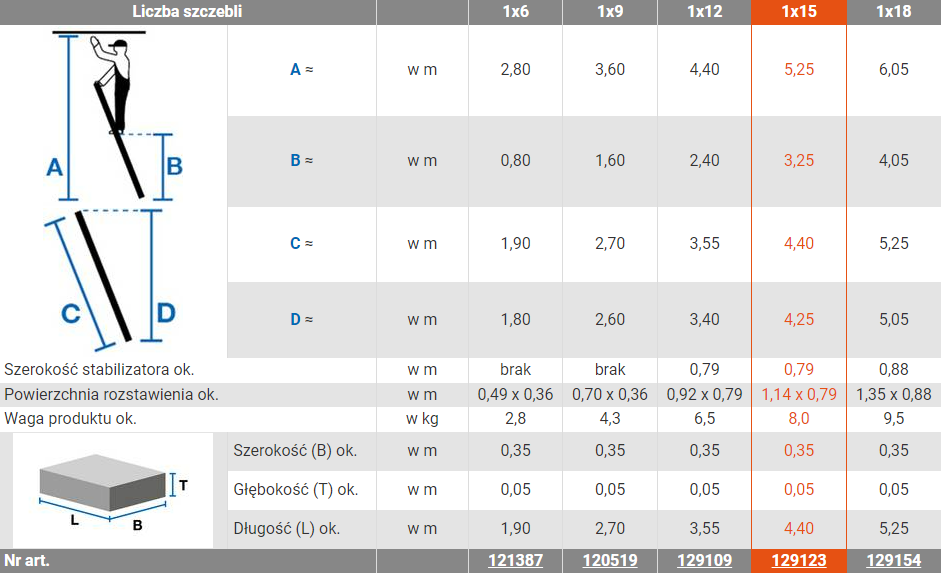 - Stabilizator: tak, w drabinach o długości 12 szczebli i więcej