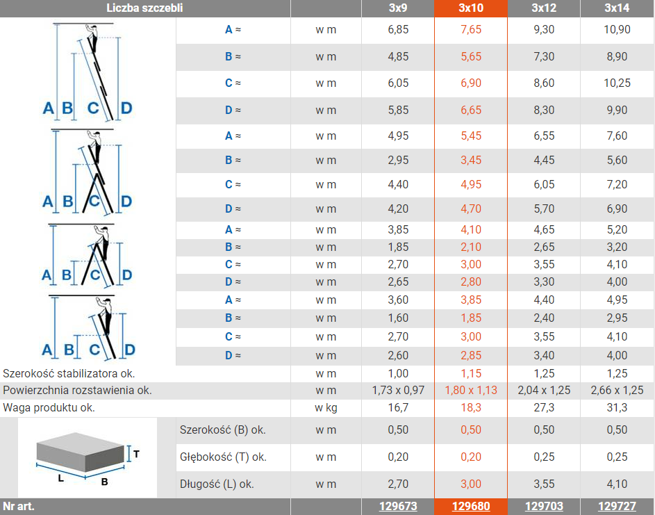 Trzyelementowa aluminiowa drabina wielofunkcyjna oferuje wiele możliwości wykorzystania, dzięki swojemu rozsuwanemu, przystawnemu i wolnostojącemu projektowi z wysuwanym elementem. Poniżej przedstawiam dane techniczne tego produktu: