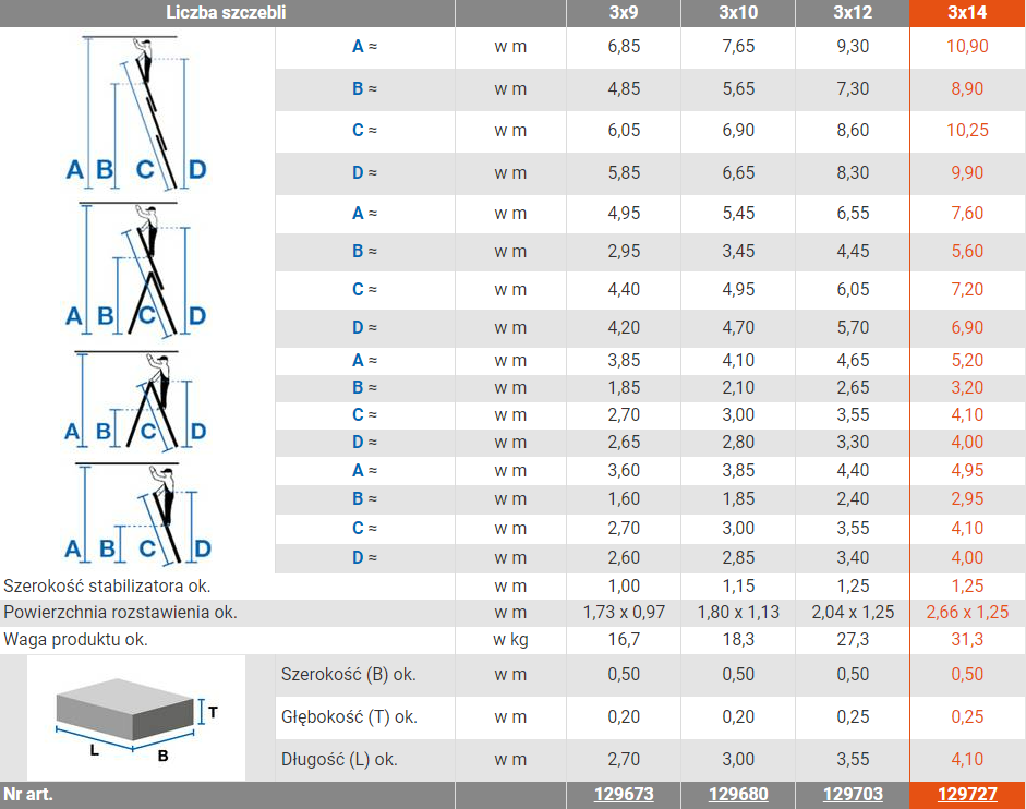 - Wersja 3x12 szczebli wymaga stabilizatora TRIGON do korzystania z wysuwanego elementu
