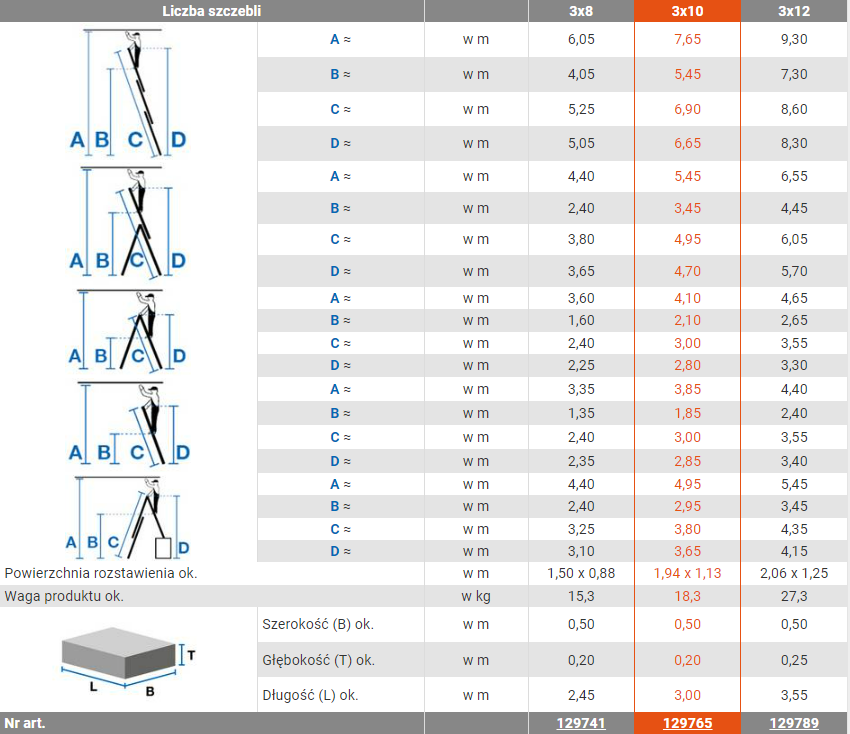 Trzyelementowa aluminiowa drabina wielofunkcyjna to wszechstronny produkt, który może być wykorzystywany jako drabina rozsuwana, przystawna oraz wolnostojąca z wysuwanym elementem. Jest idealna do różnego rodzaju prac wewnątrz i na zewnątrz budynków. Poniżej przedstawiam dane techniczne tego produktu: