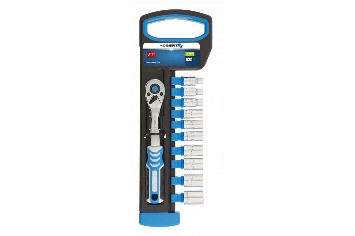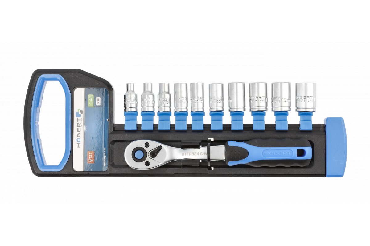 Grzechotka ¼”, 72 zęby z zestawem nasadek, HT1R334 - HOGERT