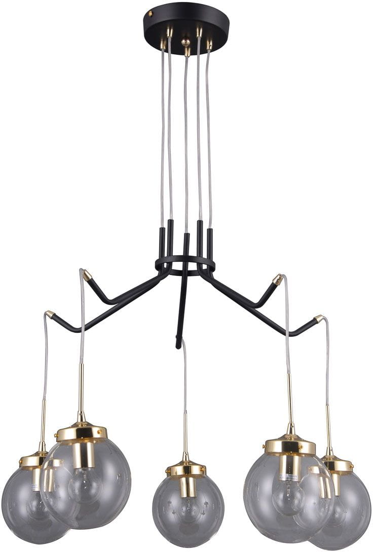 Lampa wisząca ITALUX Domenico PNPL-43232-5A to designerski produkt w kolorze czarnym mat z elementami w kolorze złotym. Wykonany jest z wysokiej jakości stali oraz szkła, co gwarantuje trwałość i elegancki wygląd. Klosz lampy jest przezroczysty, co pozwala na swobodne rozprzestrzenianie światła.